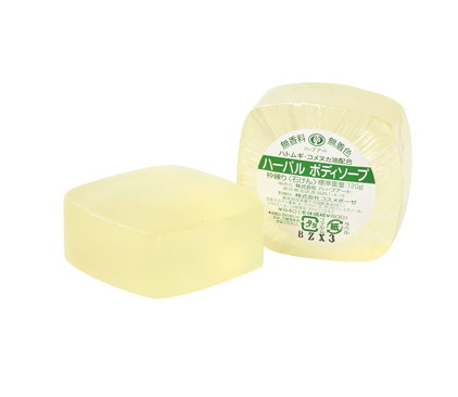 肌に潤いと滑らかさを与えるハトムギや米ぬか配合。自然熟成製法による透明感のある枠練ハーブ石鹸です。